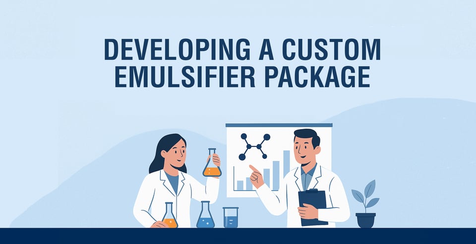 Our chemists then begin testing various emulsifier systems. We typically start with our internal library of proven emulsifiers and surfactants. However, when the situation demands, we also explore new raw materials and blends to meet the desired performance metrics.